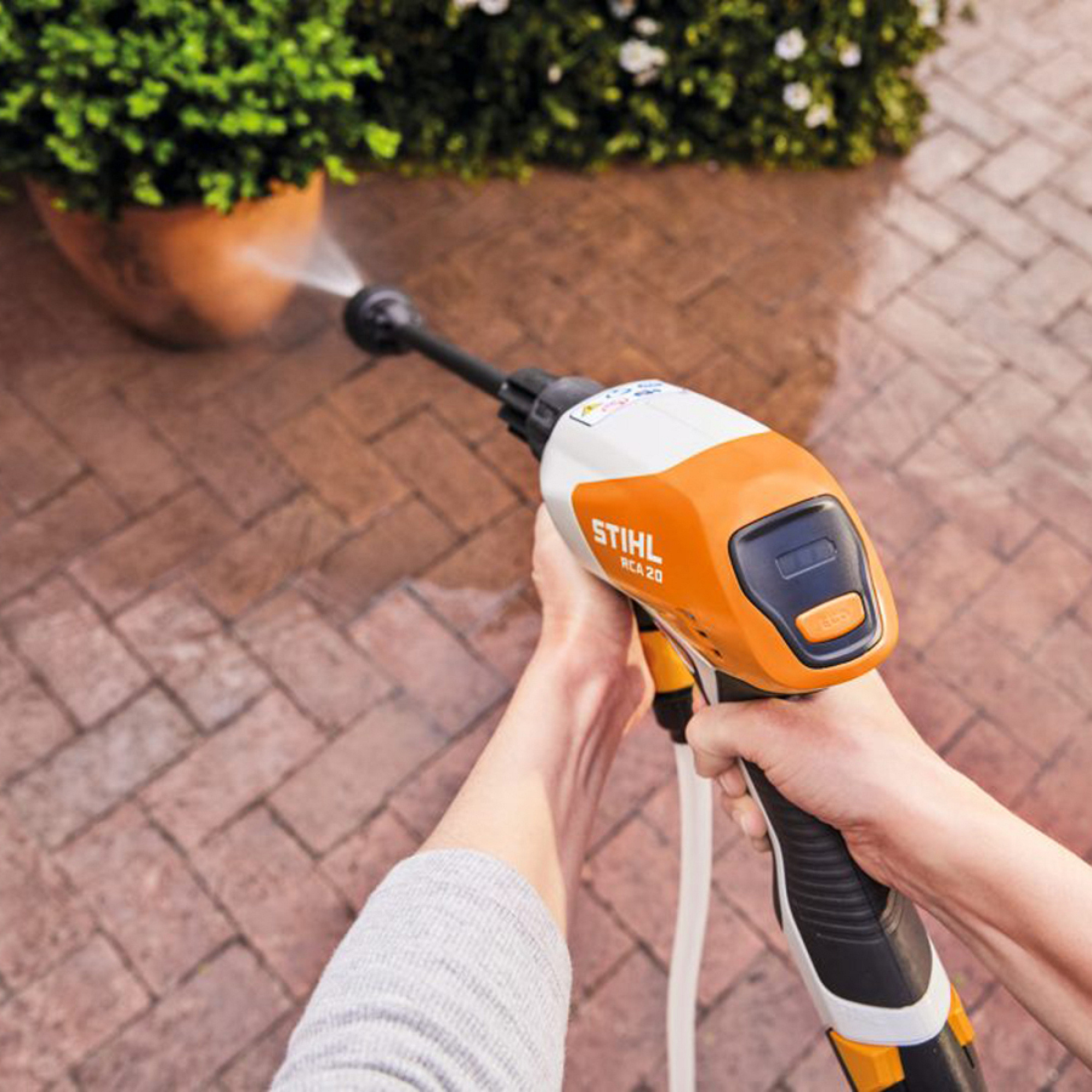 Díky maximálnímu tlaku 24 barů a nízké hmotnosti pouhých 1,3 kg můžete čistič RCA 20 mimořádně flexibilně používat k čištění zahradního nábytku, jízdních kol, grilů nebo herních prvků – v případě potřeby i jednou rukou.