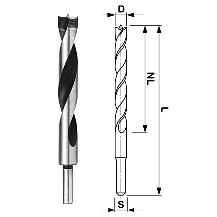 Provedení: HW spirálový vrták s vodícím hrotem a 2 řeznými břity. Provedení: 1.000 - 6.000 ot/min. Posuv do řezu 2 m/min. HW spirálový vrták s vodícím hrotem a 2 řeznými břity. Broušená spirálová drážka pro rychlý odvod materiálu. Vrták je určen pro přesné vrtání v měkkém a tvrdém dřevu, Multiplexu, MDF, DTD, HDF a plastech. Použití ve stojanových a ručních vrtačkách, CNC strojích.