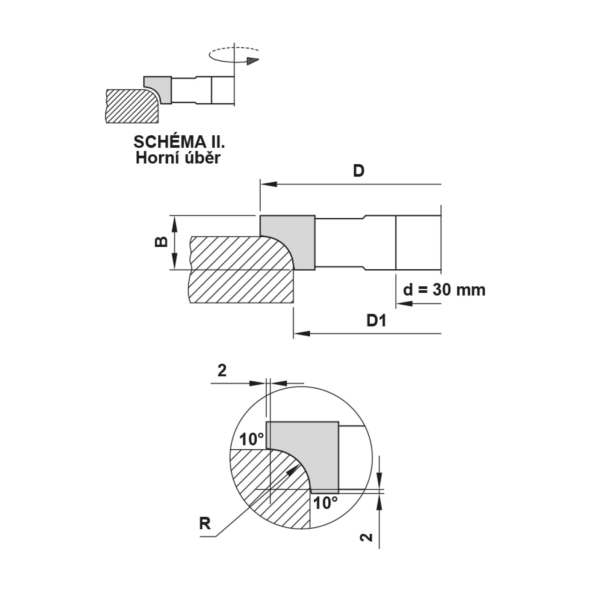 Provedení: HW pájené břitové destičky, Horní úběr.