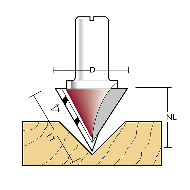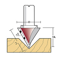 Provedení: pájené břity HW, Z1. Tato jednobřitá fréza na V-drážky je zkonstruovaná tak, aby při frézování na dně drážky nevznikala žádná ploška. Při frézování vzniká přesná V-drážka. Hrany jsou čisté i u citlivých povrchových úprav. Fréza je ideální pro práci na horních CNC obráběcích strojích a v ručních horních frézkách. Konstrukce nástroje napomáhá snížení pravděpodobnosti ulomení špičky břitu.