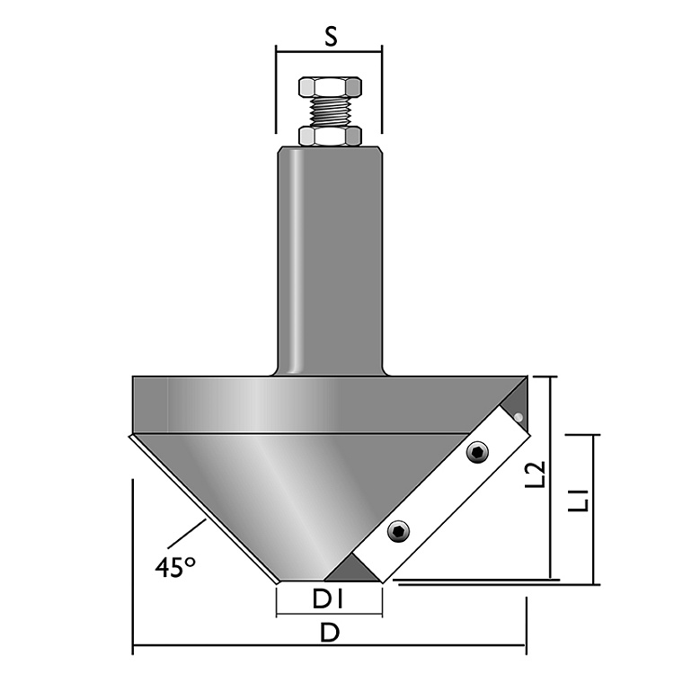 Provedení: HW-VBD, Z2. Doporučené otáčky: 8 000 - 12 000 ot/min. Určeno: pro použití v CNC obráběcích centrech a horních frézkách. Výkonný nástroj pro srážení hran na 45° měkkého a tvrdého dřeva, překližky, MDF, plasty.