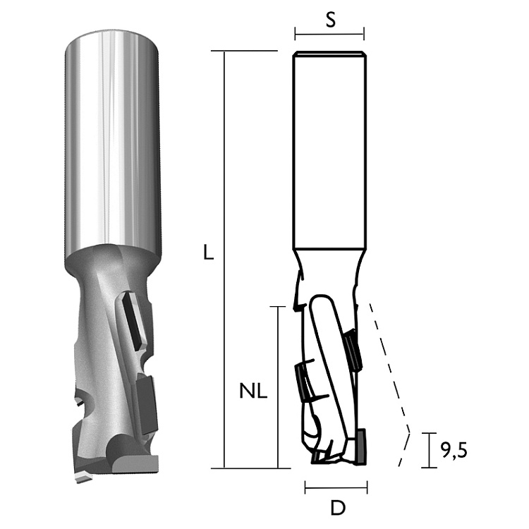 Provedení: Z1+1, DP pájené břitové destičky, zavrtávací břit HW. Výška destiček H = 2,7 mm. Použití: pro CNC obráběcí centra a horní frézky. Doporučené otáčky: 18.000 - 24.000 ot/min. Doporučený posuv: 4-8 m/min MEC. Typ Ekonom je základní řadou diamantových fréz určených pro efektivní obrábění materiálů DTD, MDF, exotické dřeviny, vícevrstvé lepené dřevo, plasty. Ideální nástroj pro formátování, orovnávání a drážkování v malosériové a zakázkové výrobě. Do průměru 12 mm je možné nástroj použít i v ruční frézce.