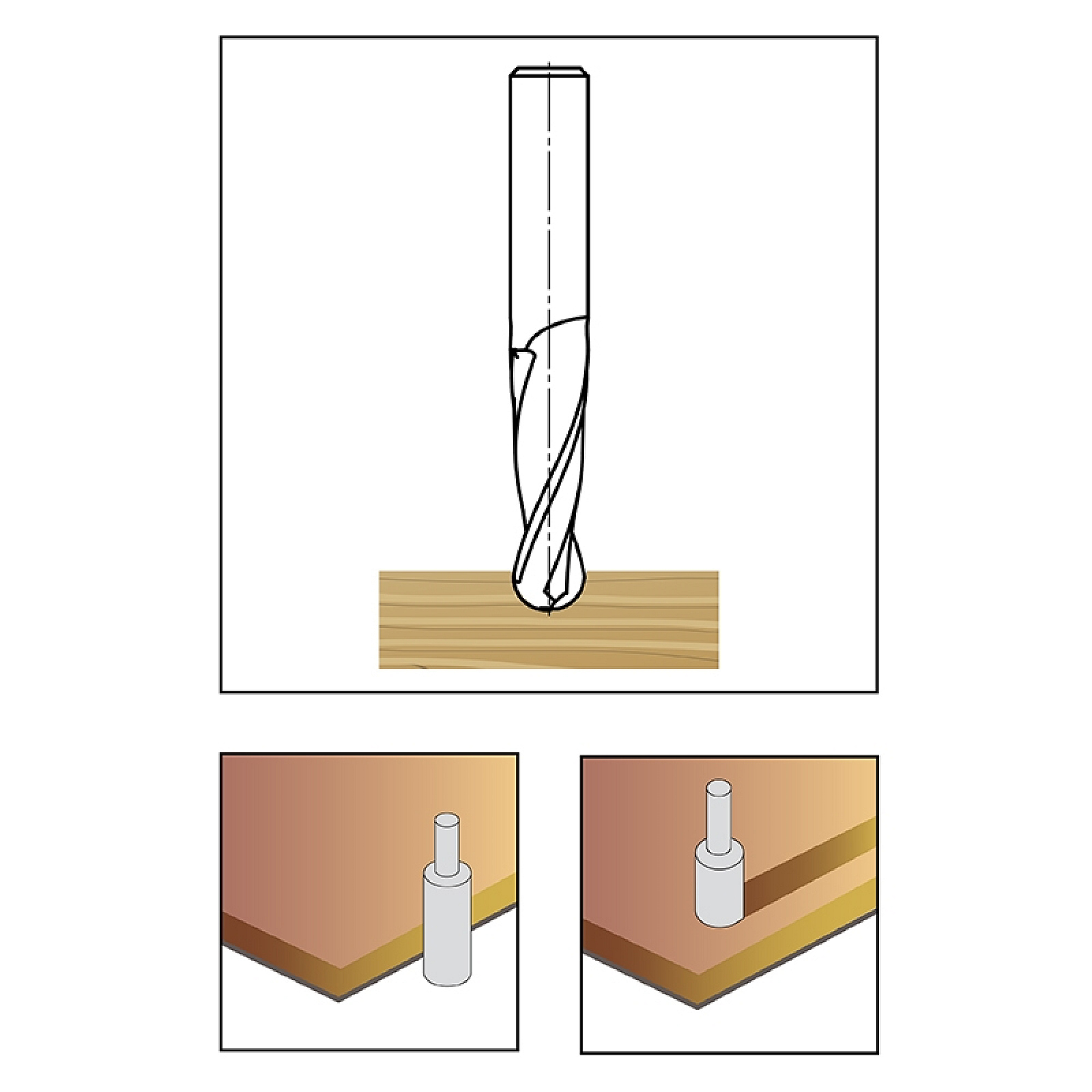 Provedení: monolitní HWM, Z2. Pro CNC obráběcí centra a horní frézky. Doporučené otáčky: 18 000 - 24 000 ot/min. Drážkování a frézování kontur při výrobě modelů v dokončovací kvalitě. Obráběný materiál masivní a modelářské dřevo, MDF, vícevrstvé lepené dřevo.