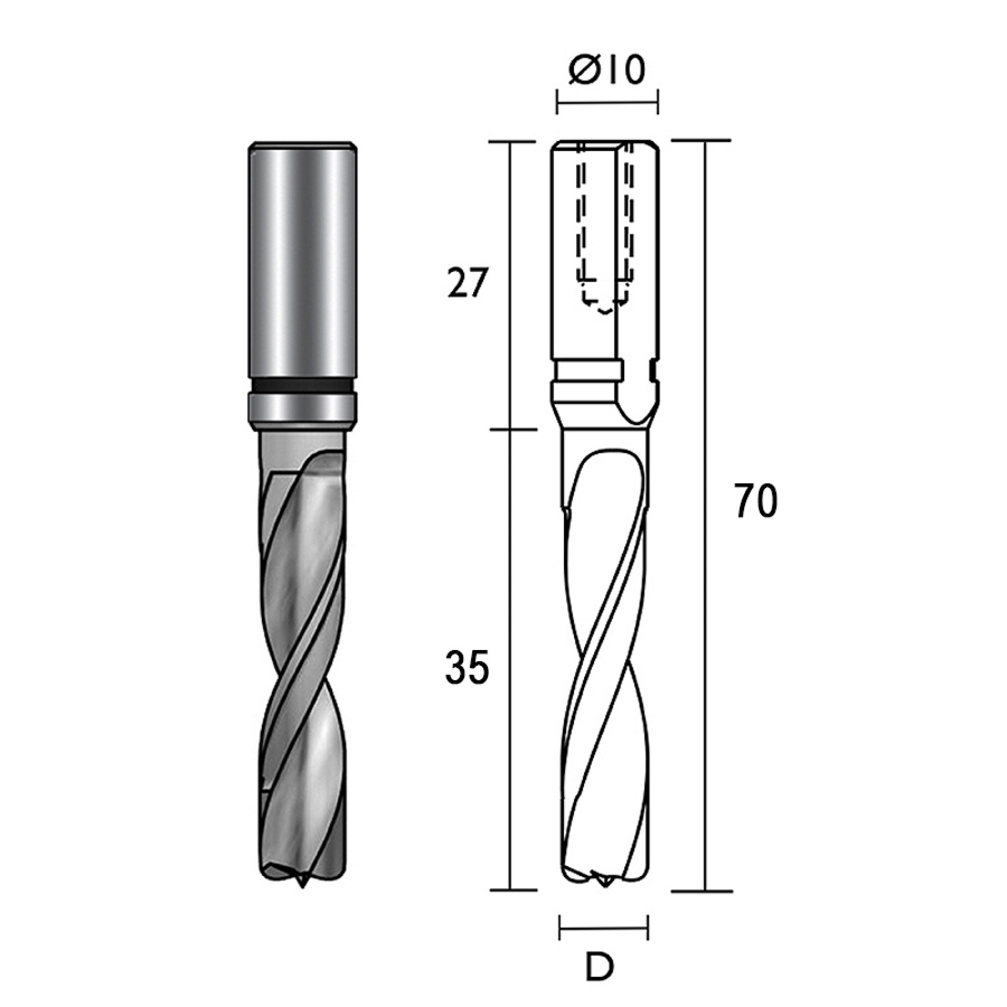 Provedení: HWM-celotvrdokovové monolitní provedení vrtáku. Vrták je určen pro extrémní zatížení. Doporučené otáčky: 3.000-9.000 ot/min. Vrták je určen pro extrémní zatížení, přesné a čisté vrtání v materiálech DTD, MDF, LTD, HPL, Multiplex, plasty, měkké a tvrdé dřevo. Použití: na vrtacích strojích CNC strojích a kolíkovačkách pro vrtání neprůchozích otvorů s možností vyšších otáček a posuvových rychlostí.