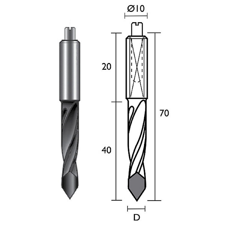 Provedení: Vysoce kvalitní jemnozrný slinutý karbid HW. Stavěcí šroub pro přesné ustavení. Doporučené otáčky: 3.000-6.000 ot/min. Použití: Ve vícevřetenových kolíkovacích strojích a CNC strojích. Pro vrtání neprůchozích děr do masivního dřeva, lepených laminovaných desek a dřevěných kompozitů.