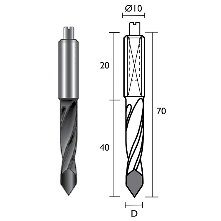 Provedení: Vysoce kvalitní jemnozrný slinutý karbid HW. Stavěcí šroub pro přesné ustavení. Doporučené otáčky: 3.000-6.000 ot/min. Použití: Ve vícevřetenových kolíkovacích strojích a CNC strojích. Pro vrtání neprůchozích děr do masivního dřeva, lepených laminovaných desek a dřevěných kompozitů.