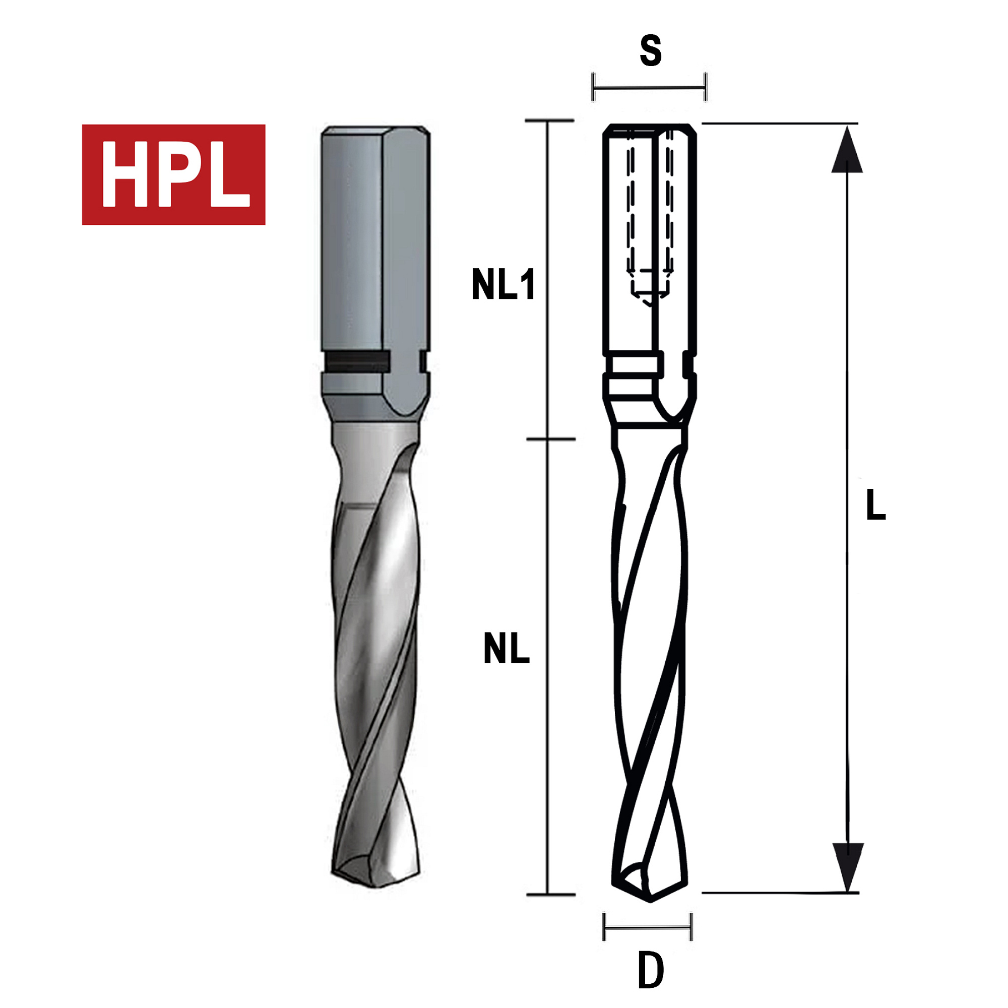 Doporučeno: k vrtání otvorů do HPL, trespa® a také do MDF, HDF, dřevotřískových desek