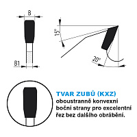 - Univerzální použití – geometrií KXZ je optimalizován pro podélné i příčné dělení dřeva a dřevěných materiálů.