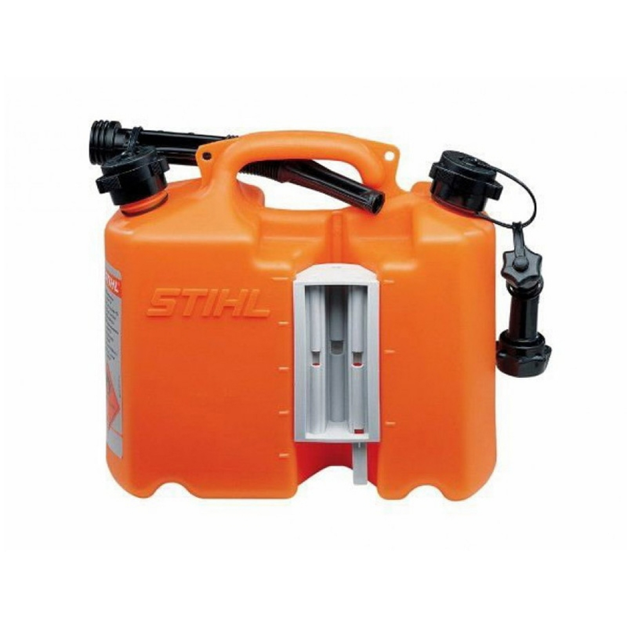 K přepravě 5 l paliva a 3 l adhezního oleje pro pilový řetěz.Včetně 1 vylévací trubky na benzin.