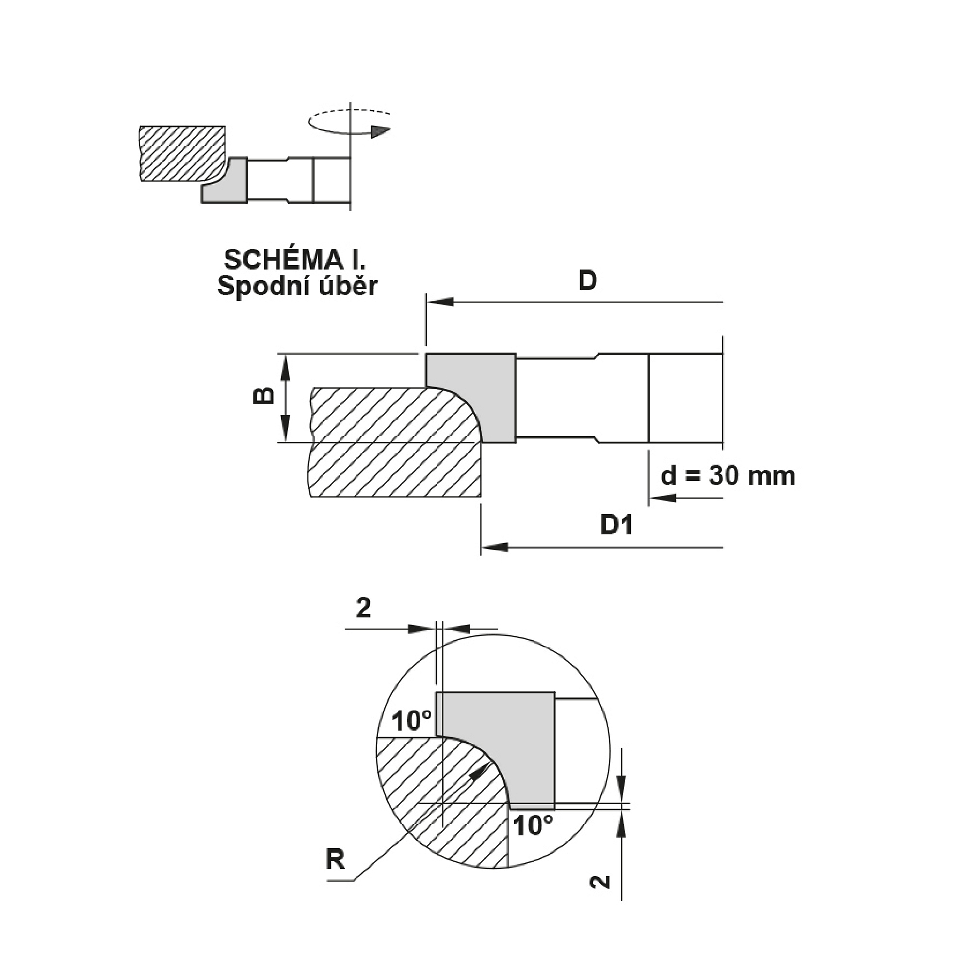 Provedení: HW pájené břitové destičky, Spodní úběr.